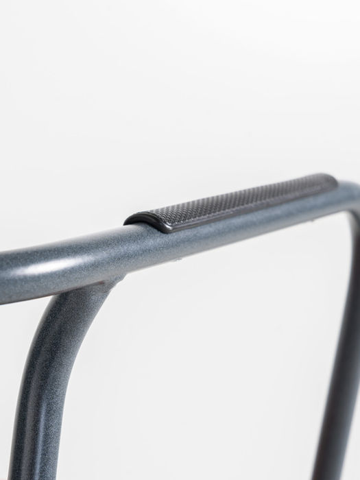 Het onderstel is een stevig 4-poots metalen frame, verkrijgbaar in meerdere epoxykleuren uit de Vepa Kern- en Trendcollectie. Je kiest zelf of je de stoel met of zonder armleuningen wil, en of je een extra zitkussen toevoegt – beschikbaar in diverse stoffen en tinten.