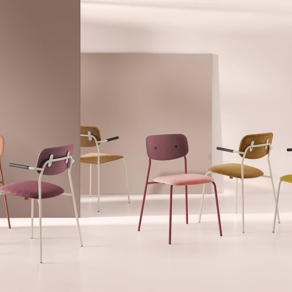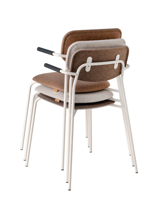 De stoel is stapelbaar, ook met én zonder armleggers door elkaar. Extra opties zoals koppeling in gerecycled kunststof en viltglijders maken Maia geschikt voor flexibele inrichtingen.